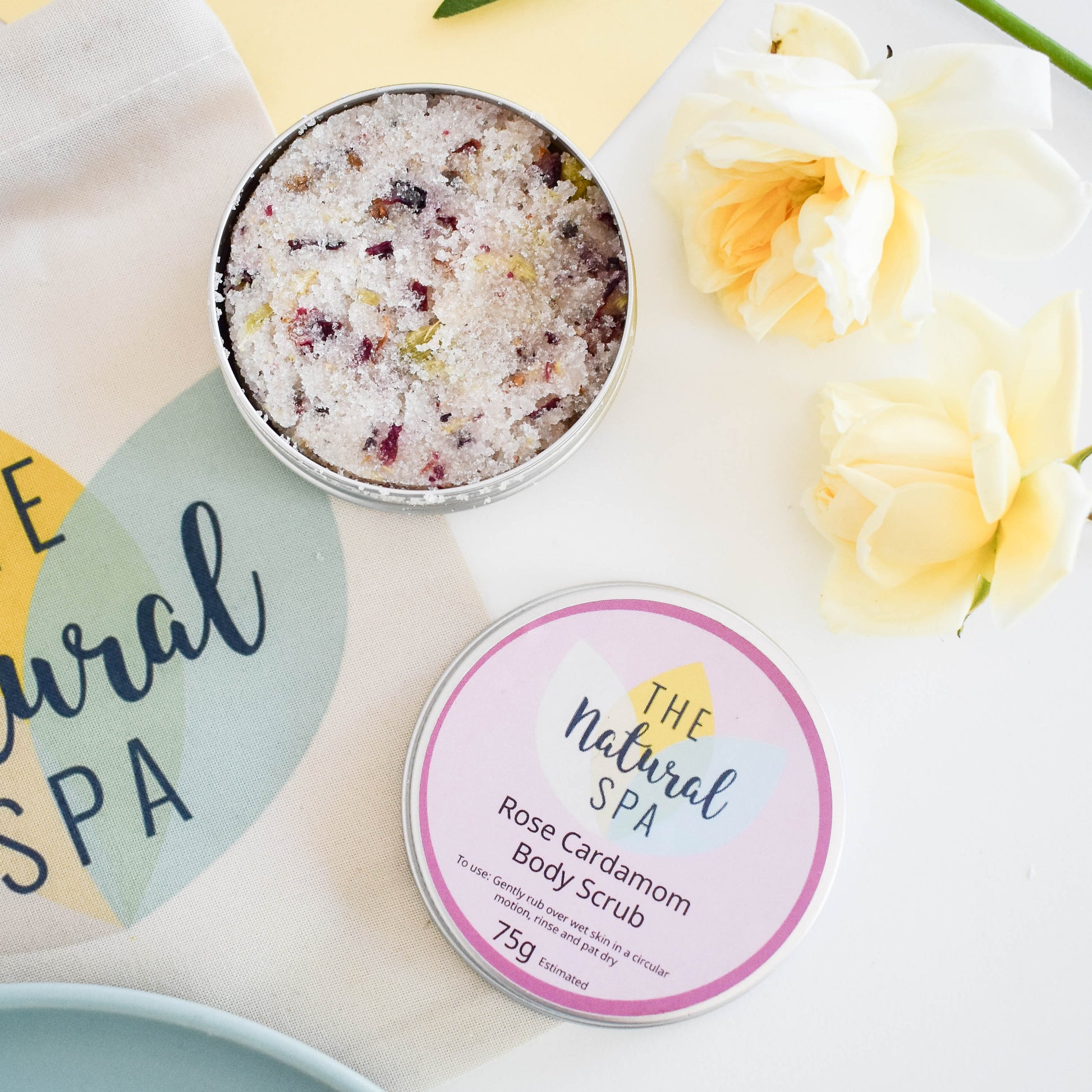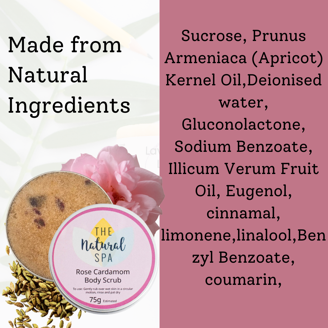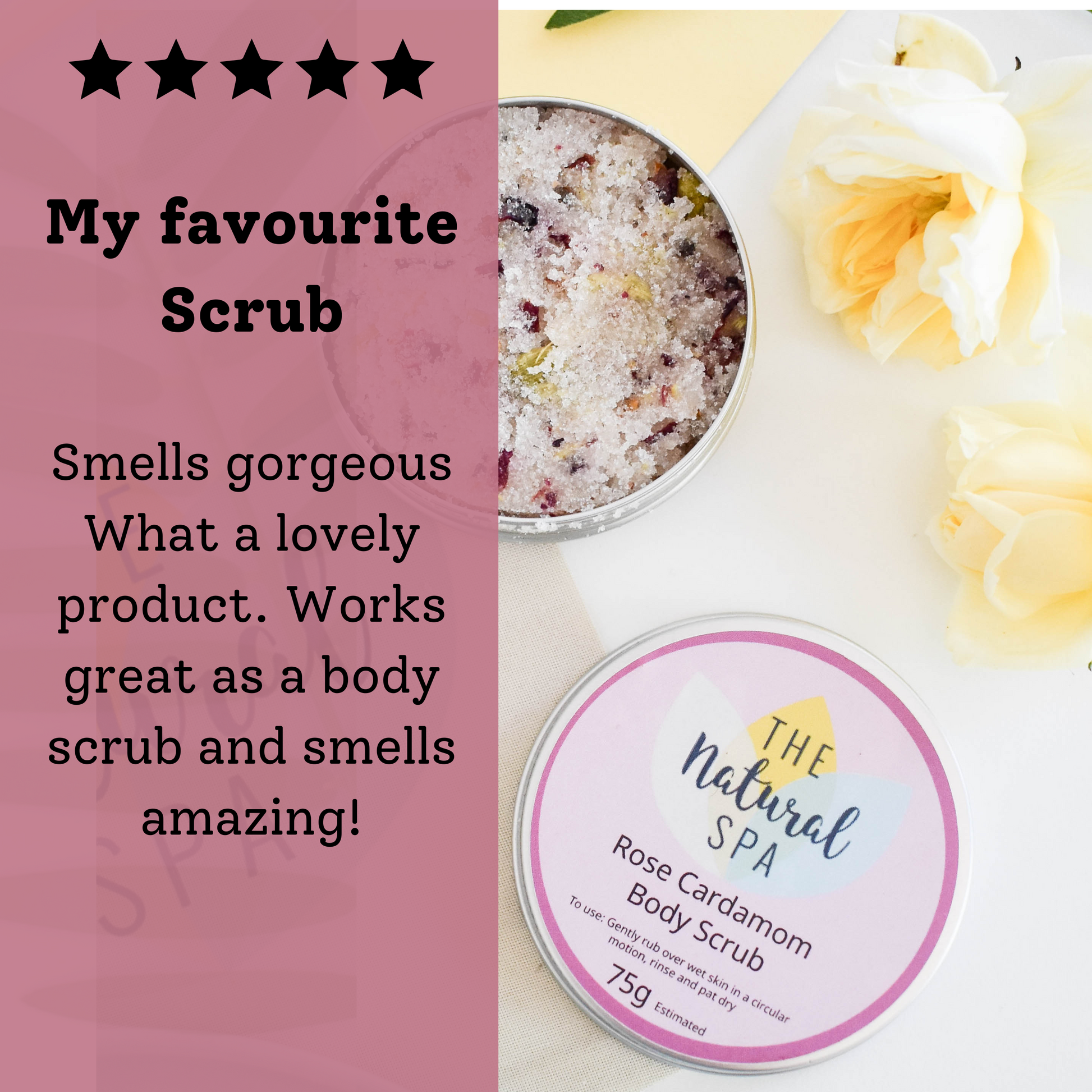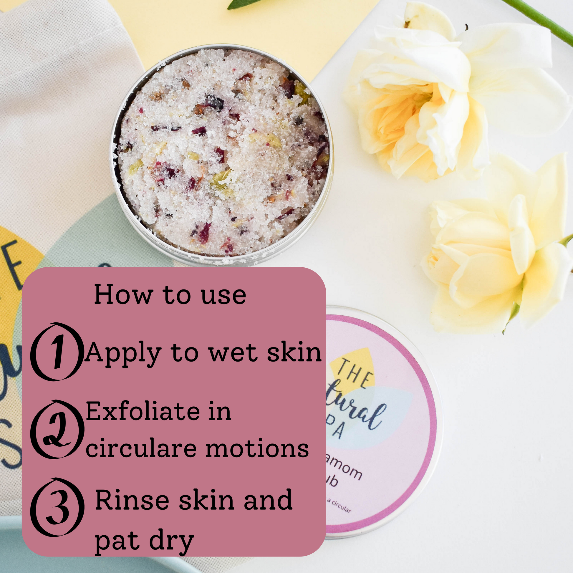 Exfoliante corporal de rosas y cardamomo: opción de 3 tamaños diferentes