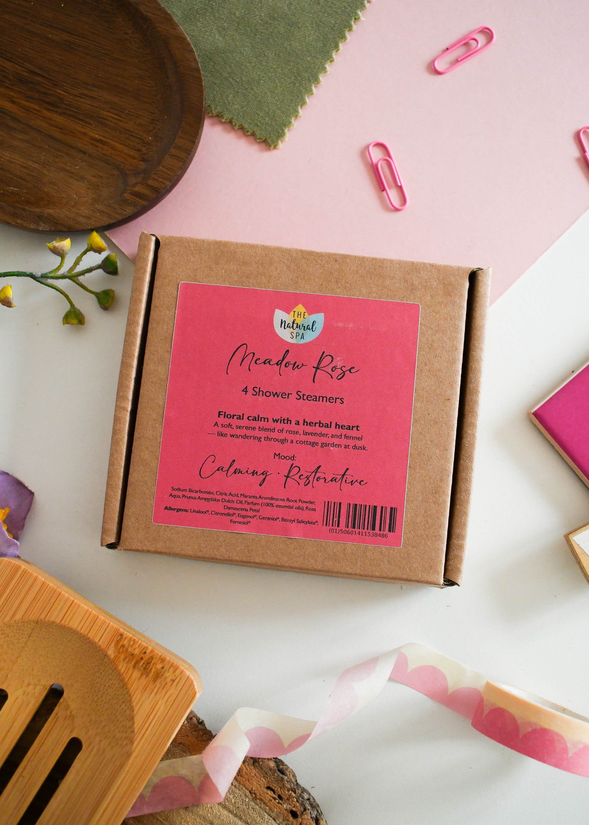 Step into a quiet summer meadow with Rose Meadow. This gentle, soothing blend of rose and lavender is designed to bring a sense of calm and balance to your morning or evening shower. Soft, floral and beautifully grounding, each steamer releases a delicate aromatherapy cloud to help you slow down, breathe deeply and reset — finished with a single rose petal for a truly spa-like ritual.